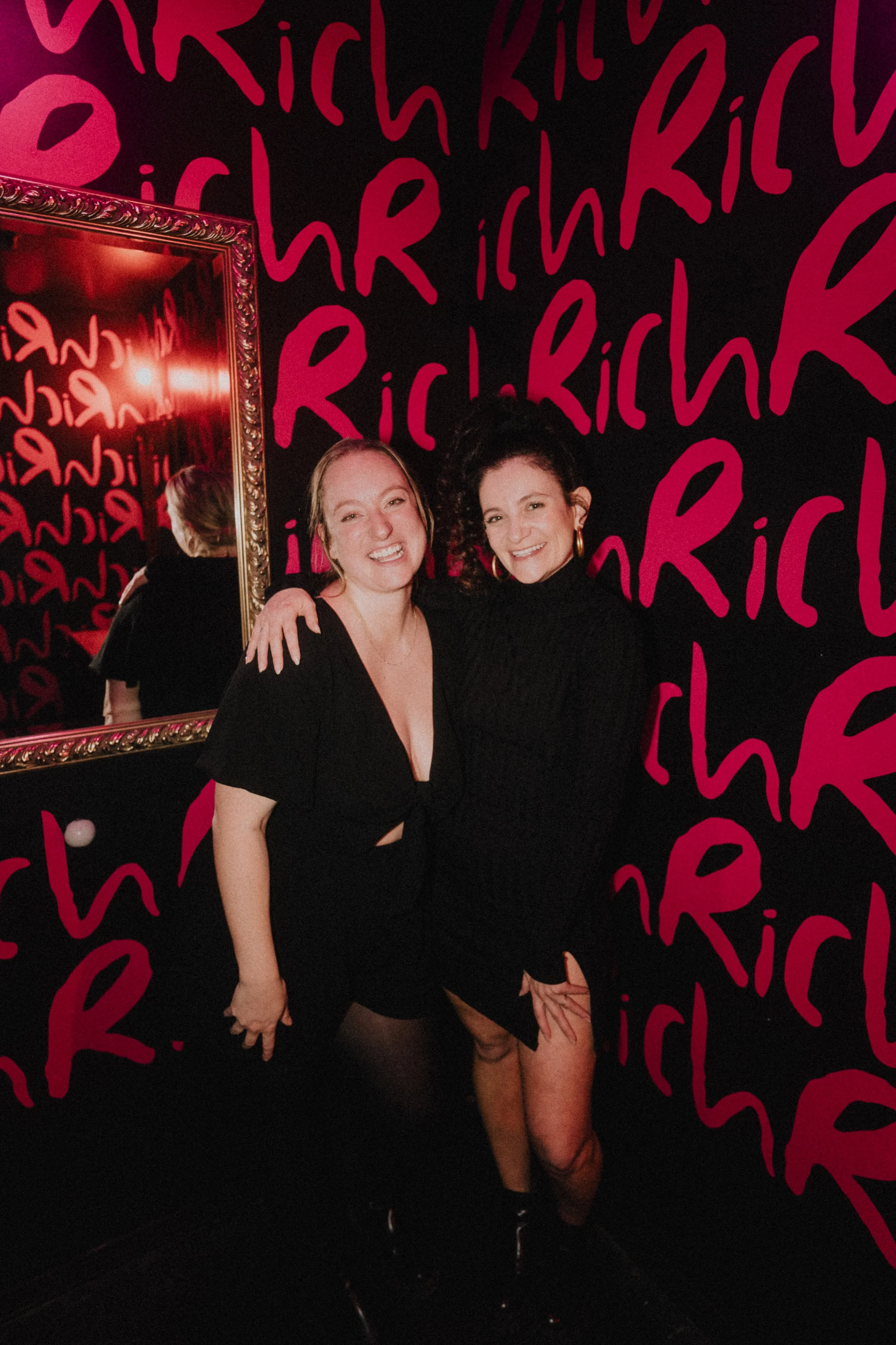 A favorite highlight of Rich Rich is the bathroom floor to ceiling Logo installation. A selfie-inspiring bathroom was a must! Hand-applied vinyl lettering in our beloved “Manic” Typeface - the full two days of install are unforgettable, just like the bathroom ;)